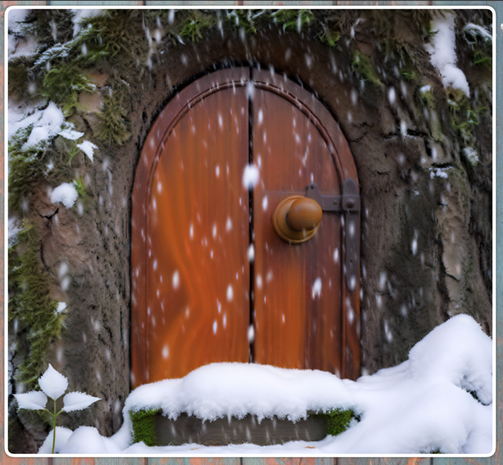 Op de grond ligt een wit tapijt. Ook op het trapje voor de deur. De takken van de bomen hebben een wit laagje en uit de lucht vallen dikke witte regendruppels. Zijn kopje hangt een beetje schuin wanneer Alffartje verbaasd rondkijkt. “Wat is er hier gebeurd?” roept hij ongerust.